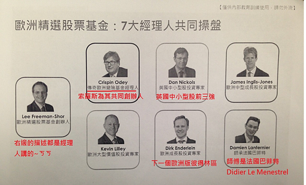 基本上我是一個都不認識,因為台灣比較知名的投資人多半以美系的為主,但是上網一查Crispin似乎是真的很屌的避險基金經理人,他所創辦的Odey資產管理公司,索羅斯就是他的共同創辦人與投資人。其餘的簡述,是經理人講的,大家有興趣可以自己上網查一查。