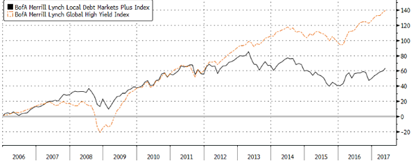 2015-2017:升息確立,新興市場本地債反彈幅度強。