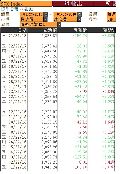 1) 美股一月大漲超過5%、連10個月上漲,還創下2016年3月以來的單月最大漲幅,別忘了2016年2月跌海,3月的上漲是個反彈波,此外如果忽略2017年3月微幅下跌0.04%,美股已經連漲15個月,漲到散戶們上車也不是、不上車也不是,因此多頭市場緩漲急跌,相當符合近期市場的描述。
