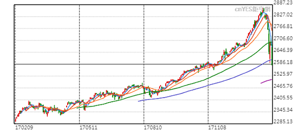 目前S&P500指數約停留在半年線的位置,年線大概就是2500點,也就是再跌3%左右,這是可能的事情,就算再跌3%我也不意外。